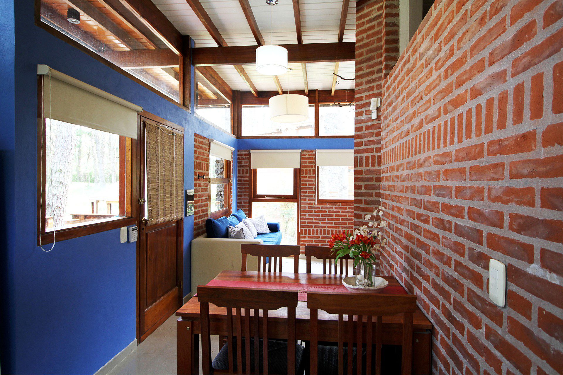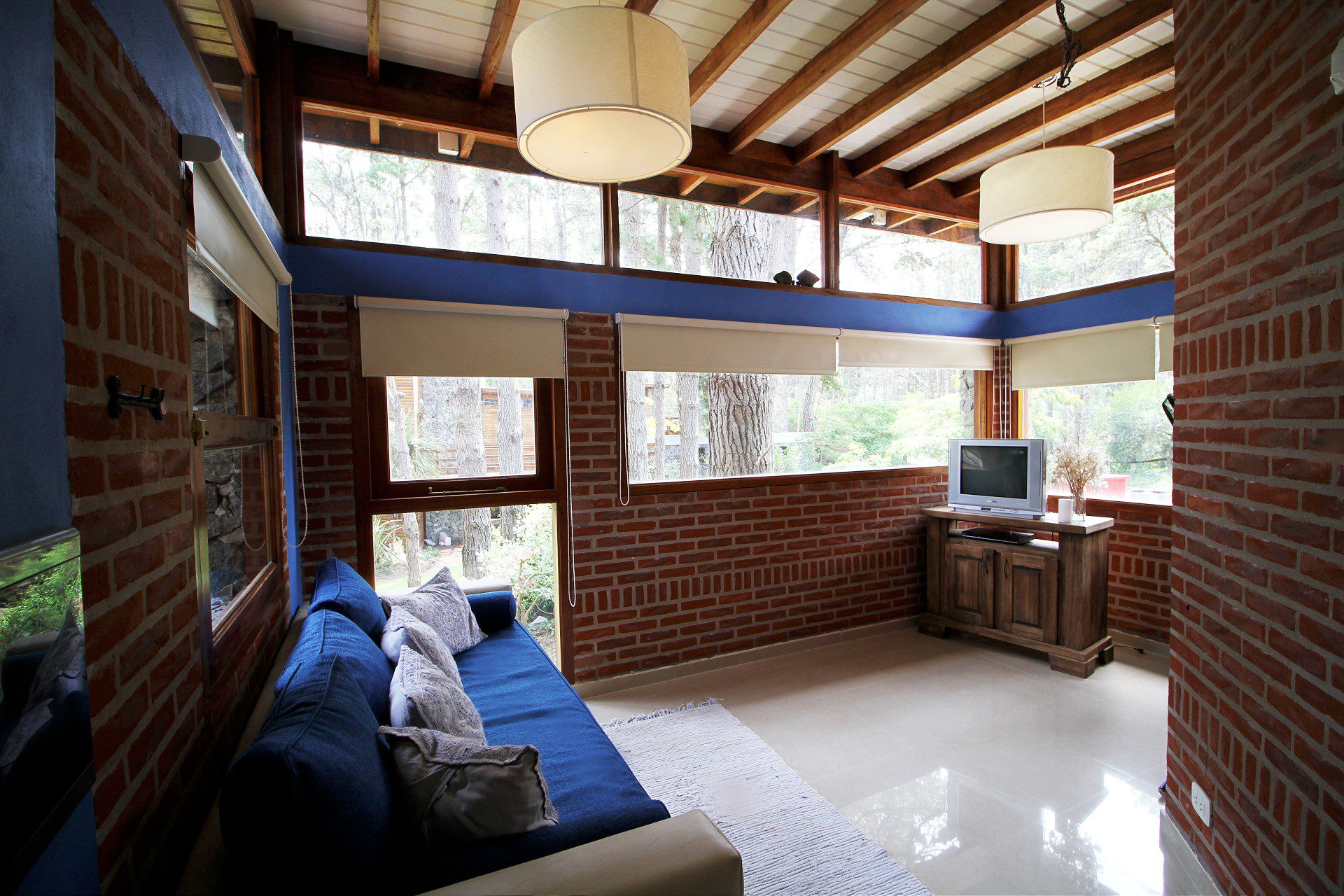 Comedor y living con salamandra, sillón con 2 camas de 1 plaza. Guardas en el baño de Vitro fusión pintadas artesanalmente. LCD / Smart.