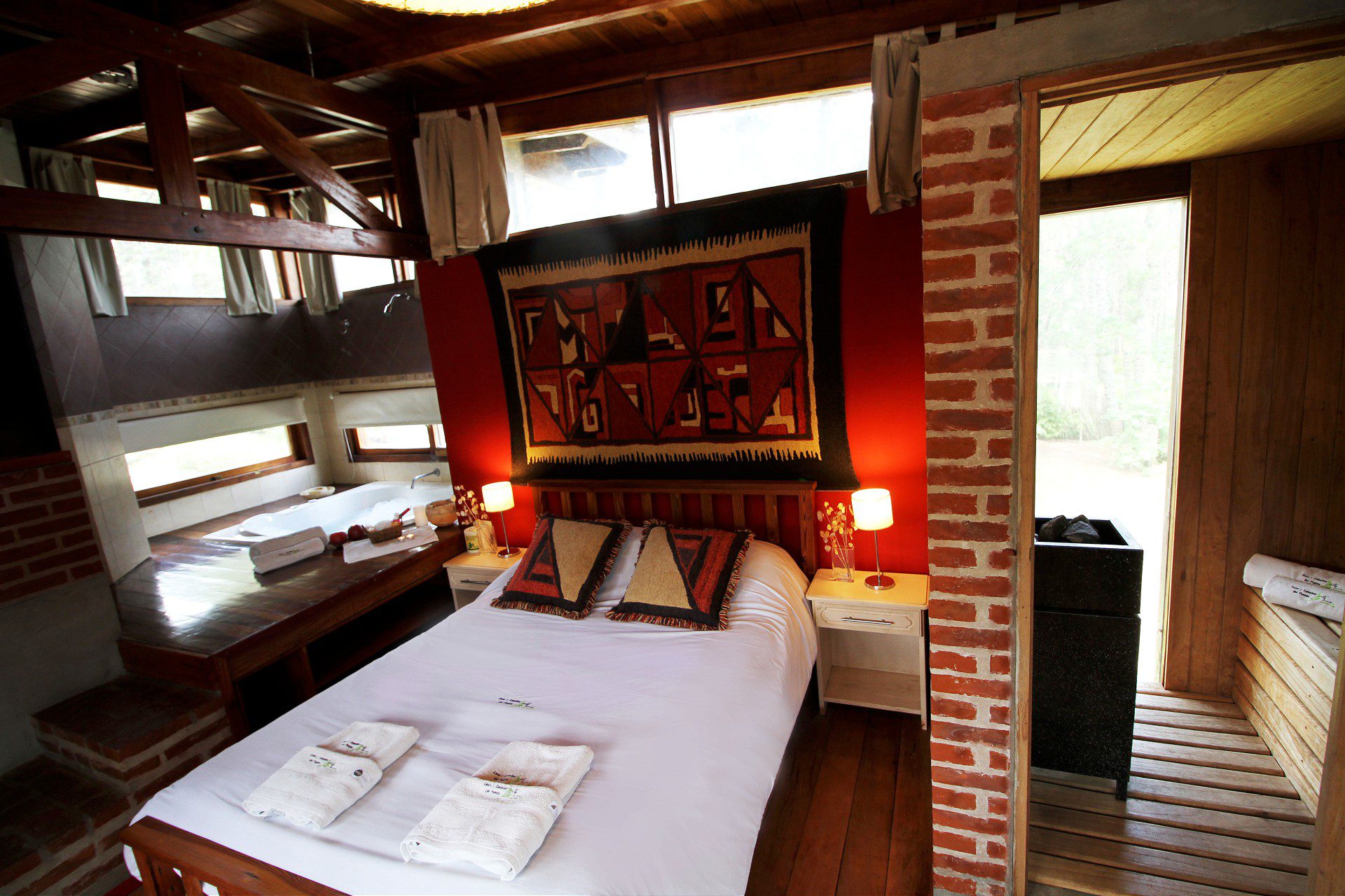 Distinguido dormitorio principal, baño en suite, Jacuzzi DOBLE con vistas al bosque, secador de pelo de pared, Aire acondicionado por Splits Frío-Calor, LCD Smart.